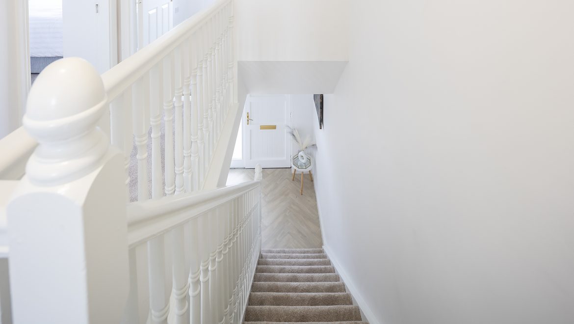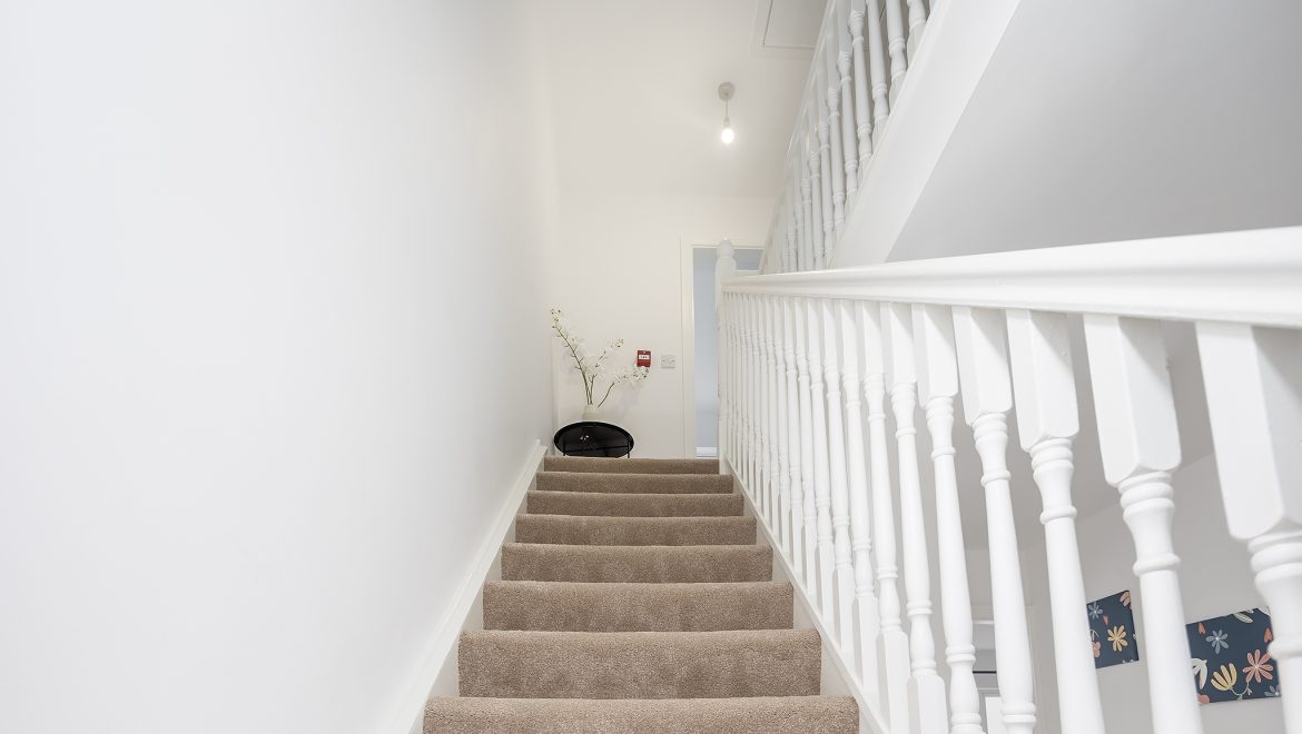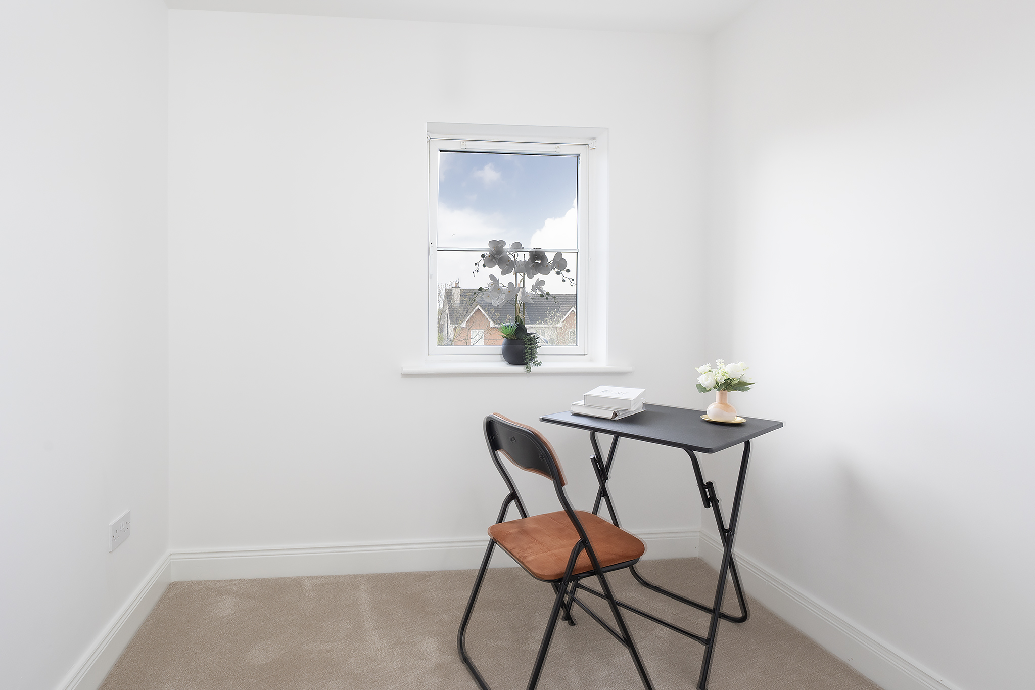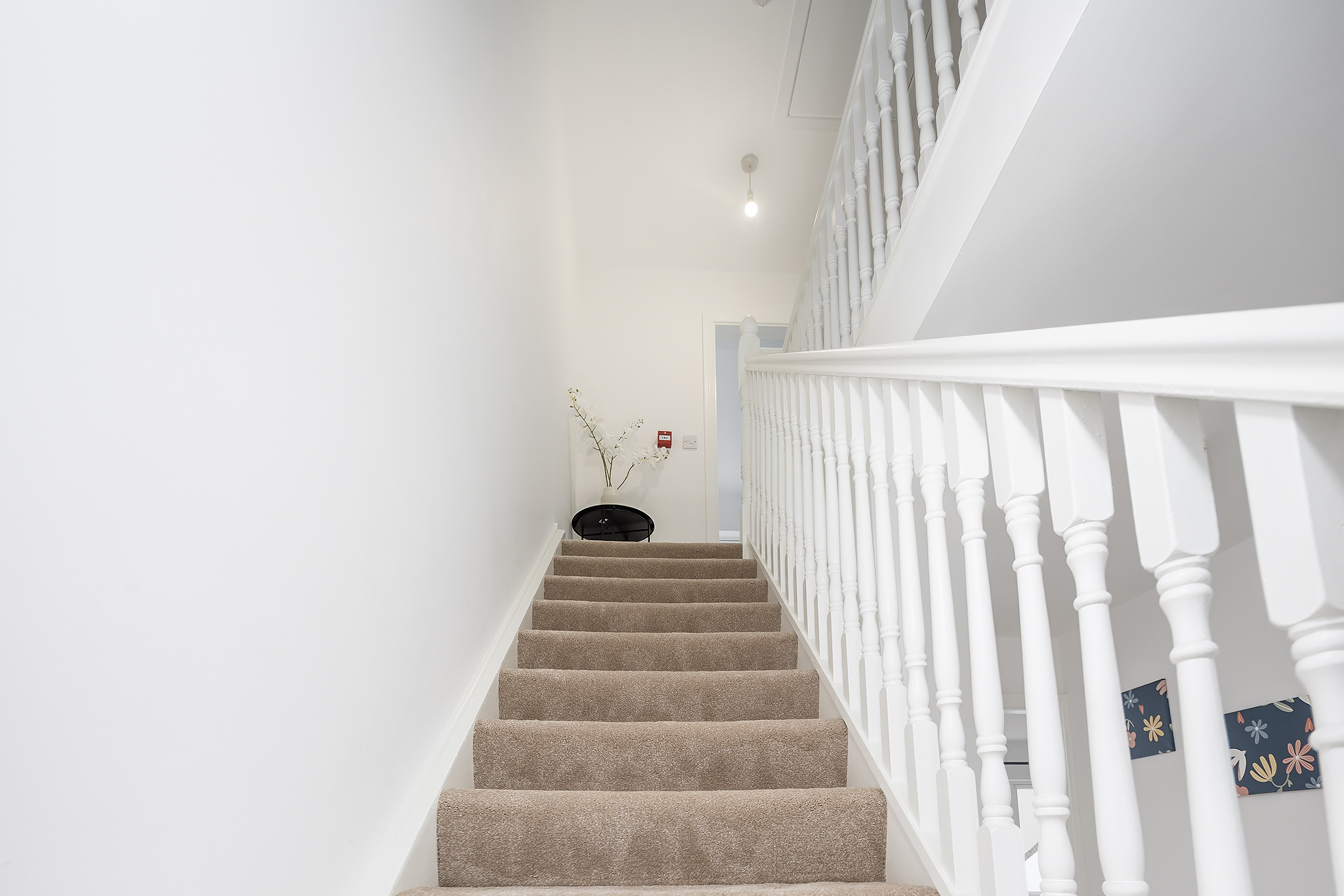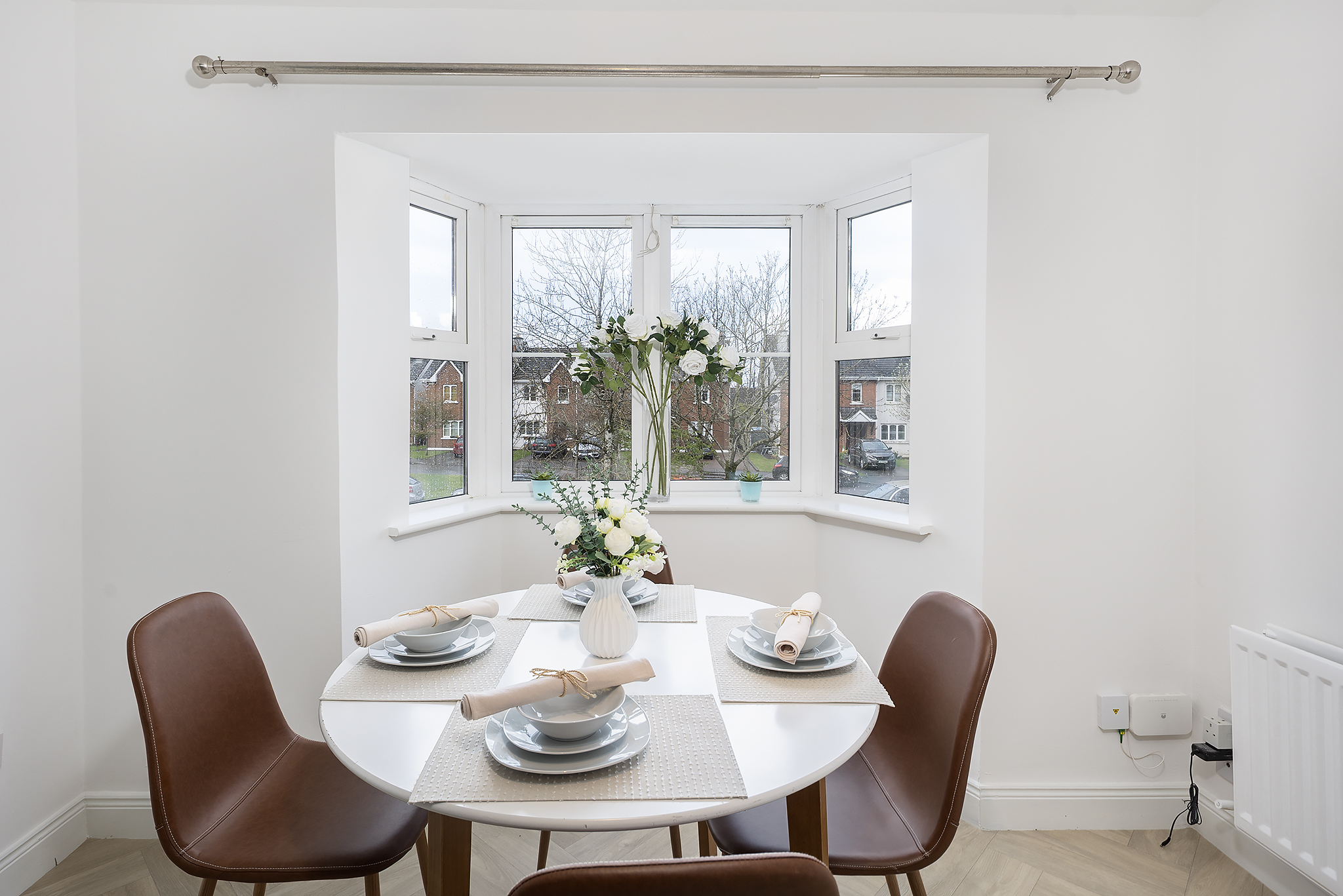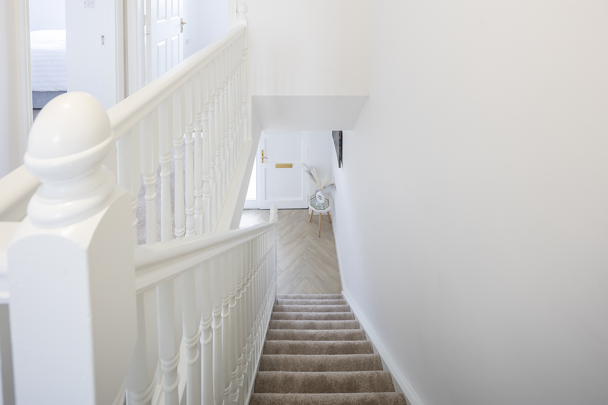 Wood effect vinyl flooring, electric fire, curtain poles, light fitting
